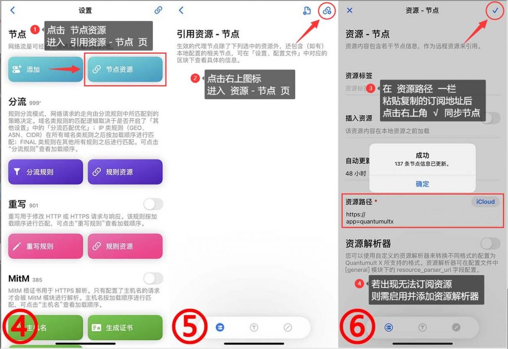 在 资源 – 节点 页面,打开资源解析器开关,将以下内容复制并粘贴,即可解析订阅。
