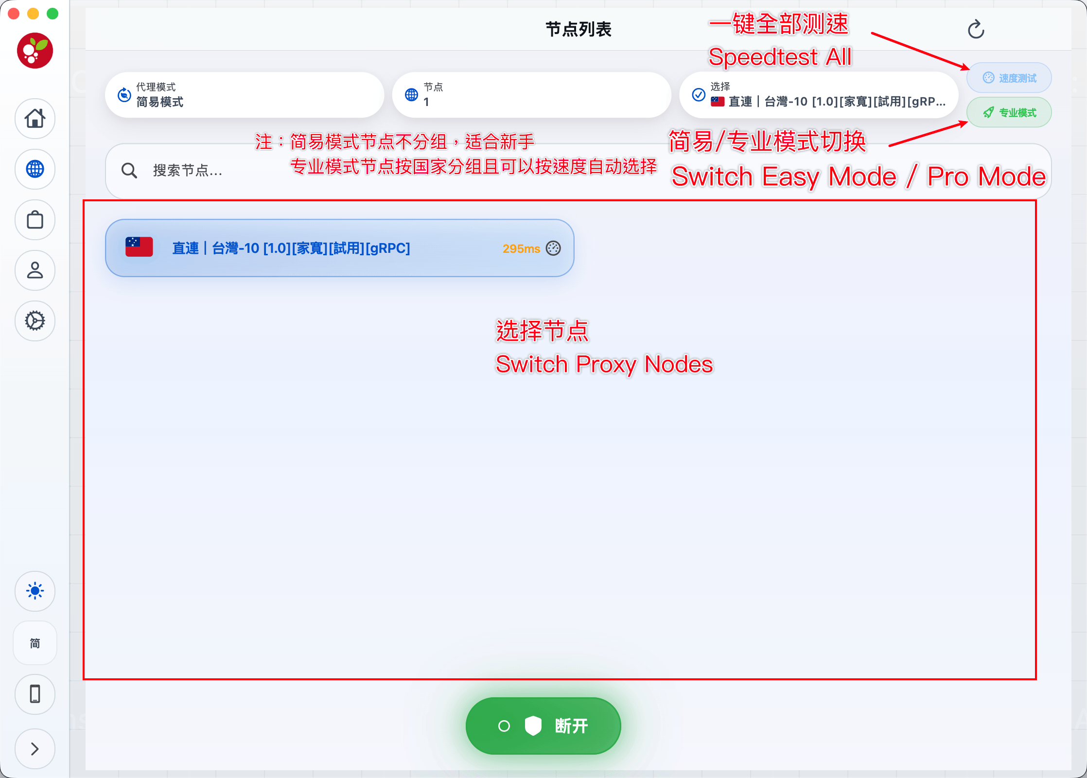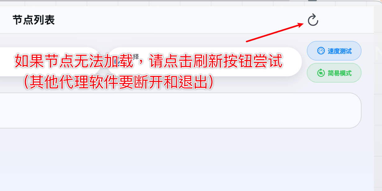 登录客户端后,点击此处可以进入节点列表选择节点。